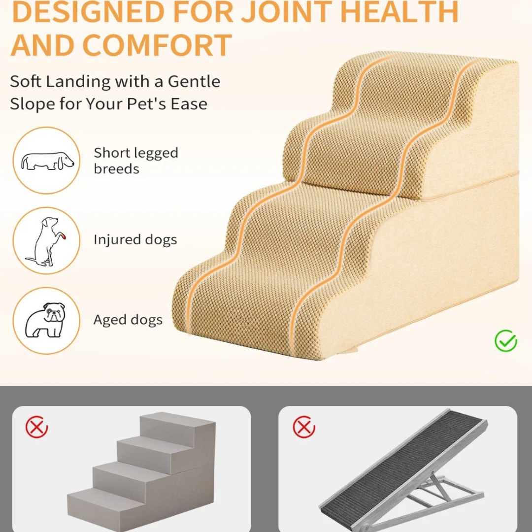 Yes! The gentle slope and soft foam design help reduce pressure on joints, making these stairs ideal forsenior dogs,short-legged breeds, and petsrecovering from injury.